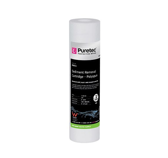 The Puretec PX011 sediment removal cartridges are highly effective in the removal of dirt, rust sand, silt, algae and other particles. The PX series whilst designed for water are compatible with many other liquids. The PX Series cartridges are constructed from virgin polypropylene which is spun and melted simultaneously. This innovative technique means there is no centre core to restrict filter performance. Precise depth filtration is achieved through graded density construction. FEATURES & BENEFITS • Massive sediment holding capacity. • Graded depth filtration. • Protects appliances and health with sediment-free water.