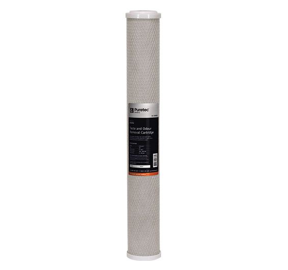 Extruded Carbon Cartridge, 20", 0.5 micron The Puretec Basic EC Series cartridges are specifically designed for drinking water and are very effective for chlorine, odour and taste removal. The high porosity design helps prevent the cartridge from plugging before its adsorption capacity is exhausted, maximising the utilisation of the carbon while minimising pressure drop. FEATURES & BENEFITS • No carbon fines and superior contaminant capacity. • High dirt holding tolerance maximizes utilization of the carbon-block. • Enhanced dirt holding capacity for extended cartridge life. • Reduces chlorine, bad taste and odour.
